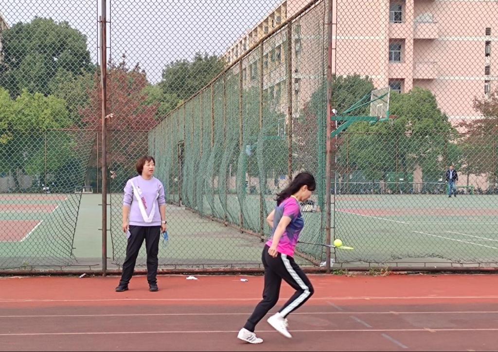 本次运动会中的托球跑项目是老年组的专项比赛。只见老师们手持羽毛球拍柄,手上稳稳托住球,脚下迅速向前冲,活力仍然不输当年。