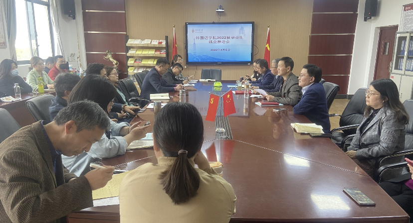 近日,外国语学院分别召开2022届毕业生就业座谈会和学院就业工作推进会。学院领导班子成员、各系主任、各支部书记、全体辅导员与研究生导师参加了会议。会议由院党委书记李亦亮主持。