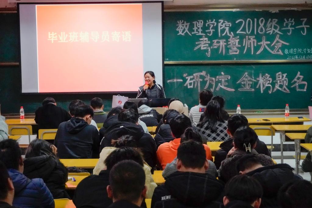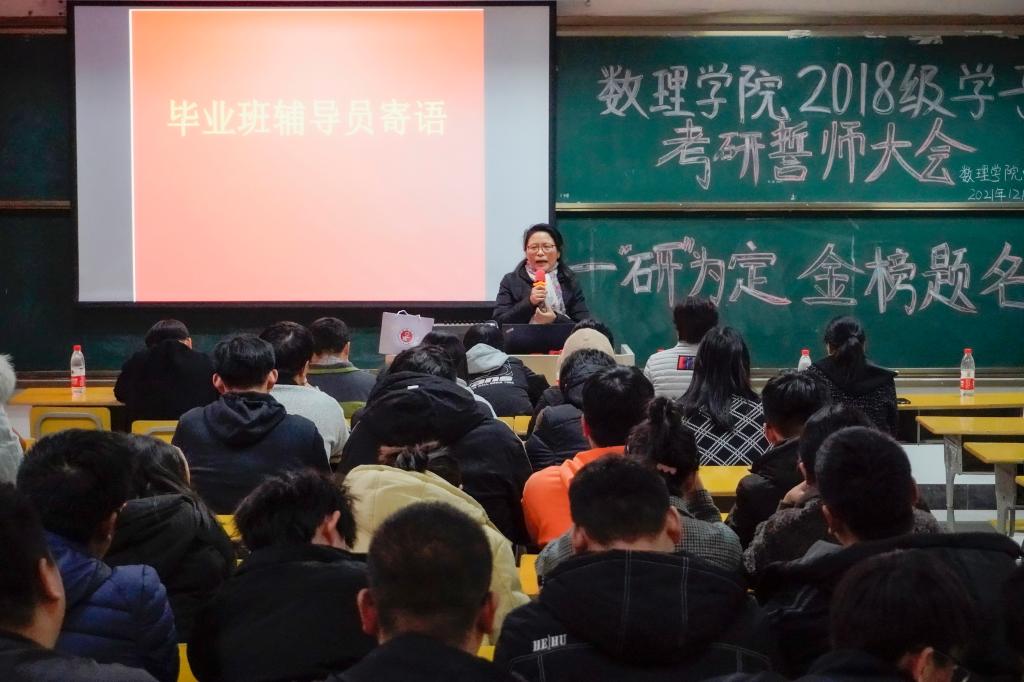 “考研必胜,一战成硕!”“一‘研’为定,金榜题名!”“心中有数,‘研’之有理”……12月10日,数理学院在I楼204教室召开2018级学子考研誓beat365会。数理学院党委副书记彭芳珍、全体毕业班辅导员、团委负责人以及100余名2018级考研学生代表参加。