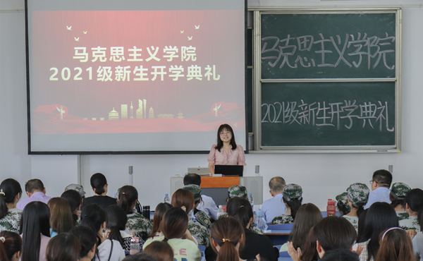 9月17日,马克思主义学院举行2021级新生开学典礼。马克思主义学院党委书记金文斌、院长罗本琦、副院长张俊生、党委副书记邹斌出席典礼。教师代表严仍昱、团委副书记贺佳欢、新生辅导员以及2021级全体新生参加了开学典礼。开学典礼由邹斌主持。