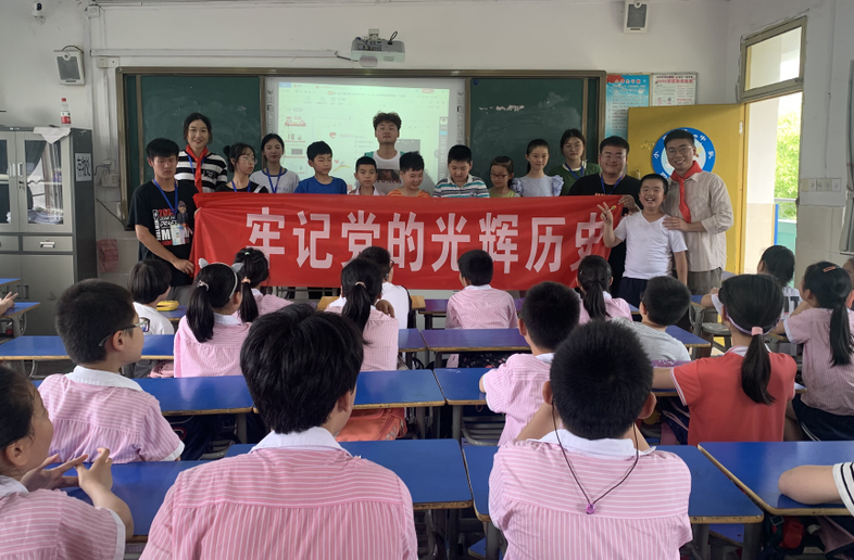 成员们通过党史小故事、红歌教唱、党史竞答等形式多样的方式向孩子们展现党史的魅力,形象生动地讲述王二小、共产党少年团的榜样小故事,给孩子们的内心种下了英雄的种子,树立了共产党员的光辉形象。他们还带领小朋友们学习红歌《歌唱祖国》,孩子们稚嫩响亮的歌声穿过教室,响遍校园,传递着一个个少年热忱的爱国之心。在党史知识竞答环节,孩子们更是热情踊跃地抢答问题,不仅调动起全场的氛围,也学习到许多党史知识。