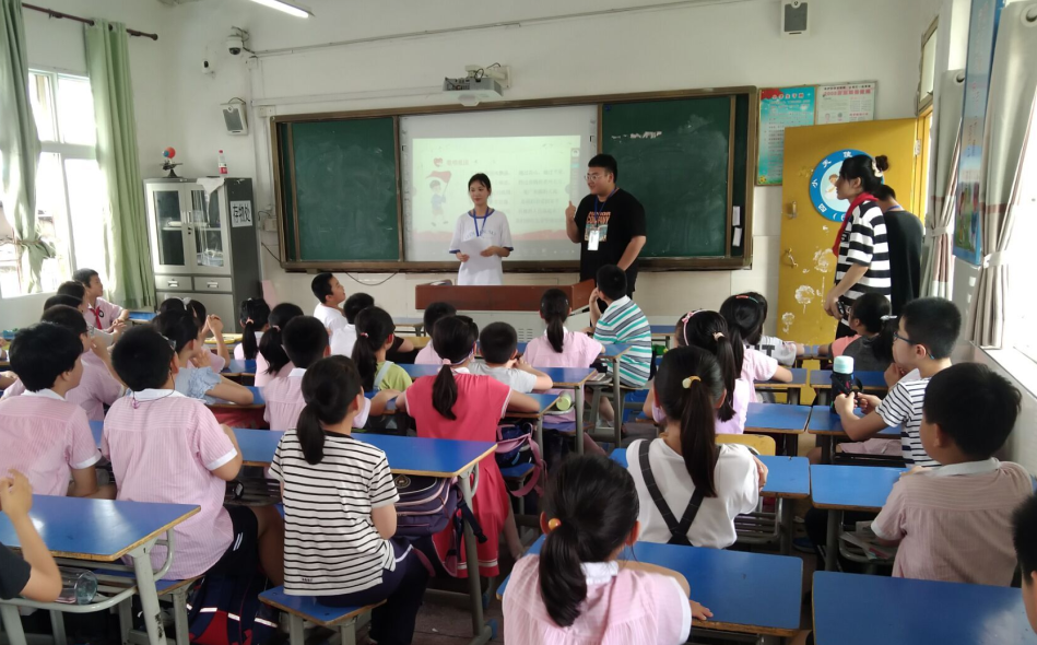 为引导广大青少年知党爱党,坚定不移跟党走,进一步激发他们坚定理想信念,立志报效祖国的决心,法学院“聚力”学生党员服务工作站成员前往安庆市高琦小学开展党史教育宣传活动。