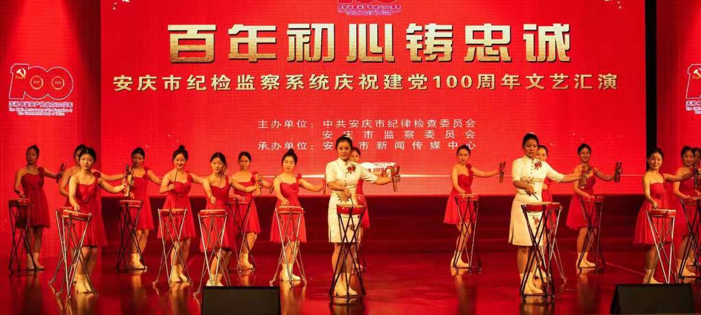 6月29日下午,由中共安庆市纪律检查委员会、安庆市监察委员会主办,安庆市新闻传媒中心承办的“百年初心铸忠诚”庆祝建党100周年文艺汇演圆满落幕。beat365黄梅剧艺术学院学子出演的作品黄梅大鼓——《弘扬正气有担当》参加演出。