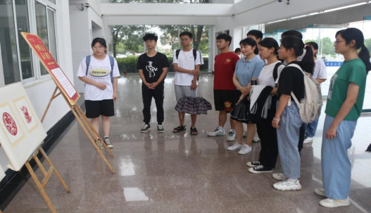 仪式结束后,培训班全体师生移步文渊楼一楼大厅,共同欣赏了学生们的优秀作品。“为庆祝建党百年华诞,我们创作了很多以建党爱国为元素的作品,礼献建党百年……”培训班学员主动担当起解说员,为前来参观的学生介绍作品相关情况。