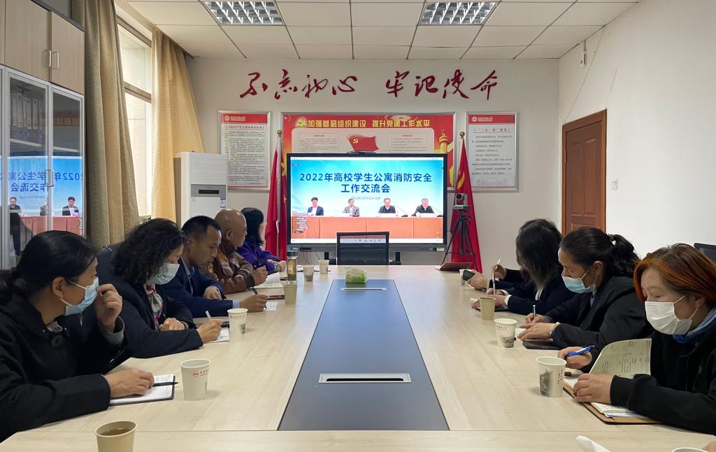 3月31日,教育部主办,中国教育后勤协会组织召开“2022年高校学生公寓消防安全线上研讨会”。安全管理处、学生处相关科室负责人,物业主管、宿舍管理员共13人线下参加视频会议。