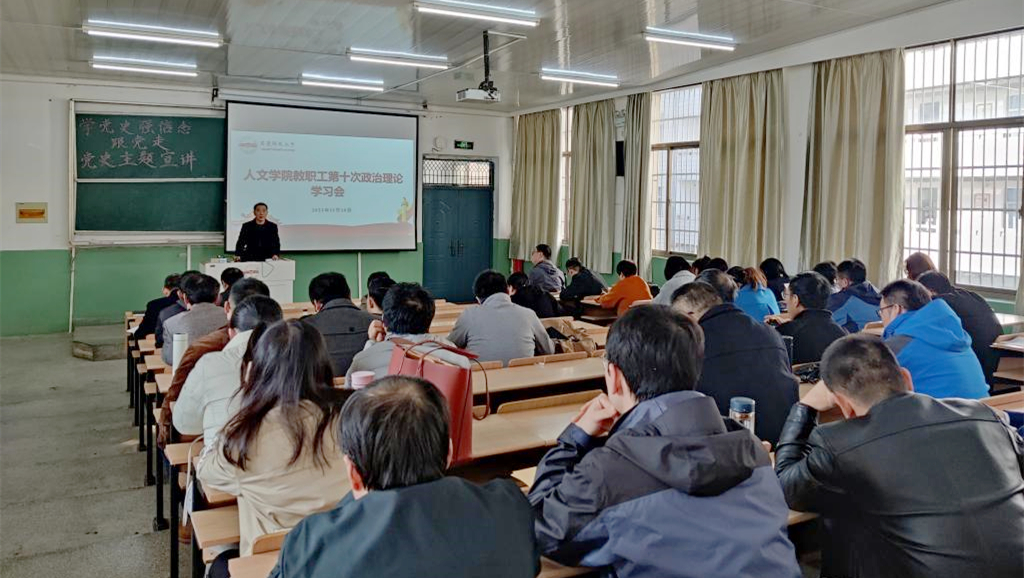 11月10日下午,人文学院召开2021年第10次教职工政治理论学习会,深入学习中国共产党安徽省第十一次代表大会精神。学院领导班子成员、全体教职工参加学习。学院党委书记张红飞主持学习会。