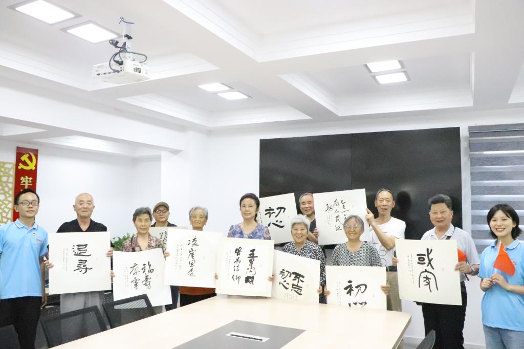 “初心”“国家”“追寻”……书法班成员们现场泼墨,将一幅幅书法作品送到老党员们的手中。他们表示,能够收到大学生志愿者这份承载着沉甸甸心意的礼物,感到非常开心。
