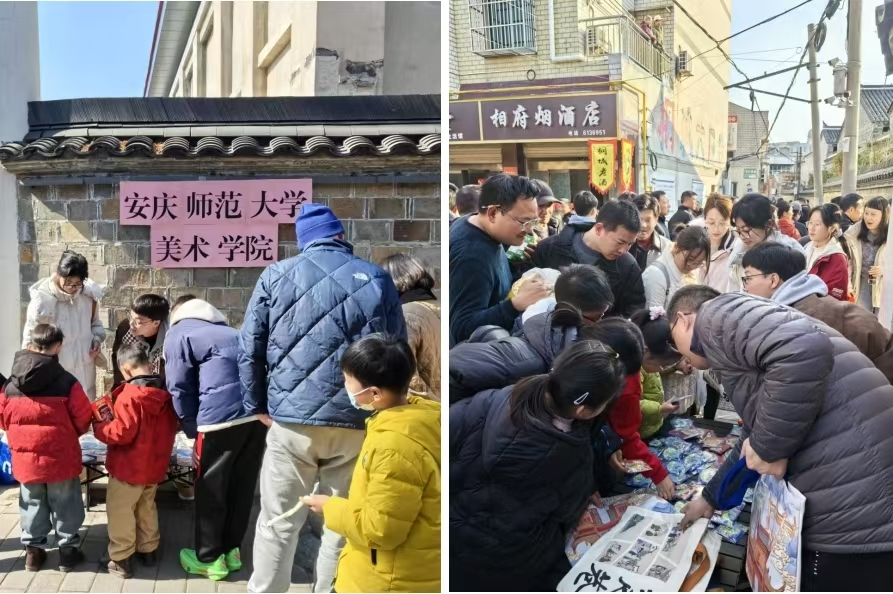 近日,美术学院师生在桐城六尺巷开展了一场别开生面的“礼让千年·创意新生”主题文创产品宣传活动,通过原创设计作品展示、传统文化体验互动等形式,师生们以艺术赋能文旅、用创意焕活历史,为新春佳节增添了浓厚的文化气息,吸引了大批游客驻足点赞。