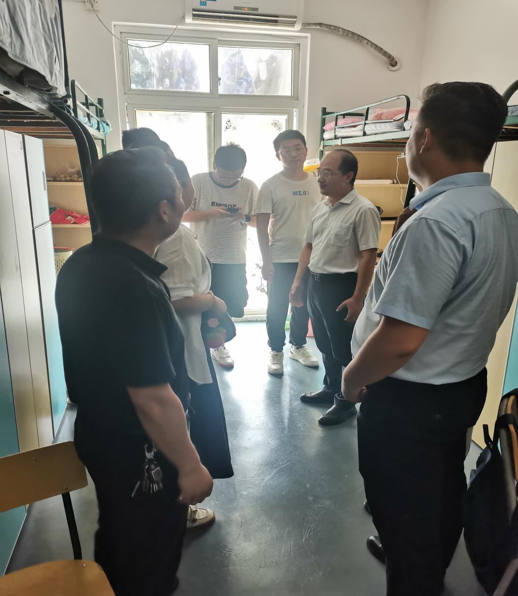 新生报到当天,学院领导班子带领新生辅导员老师,深入走访了新生宿舍,与新生和家长面对面交流,为新生们送去诚挚的问候与贴心的关怀。学院领导深入每一间宿舍,与新生和家长亲切交谈,倾听学生和家长的需求,慰问关心新生目前的生活适应情况,表达了学院对新生的亲切关怀,希望新生要珍惜美好的青春时光,尽快适应大学的学习节奏,树立明确的学习目标,培养自主学习和创新的能力。老师们检查了宿舍卫生状况、安全设施及生活设施,亲切慰问了新生开学后的实际困难,并逐一针对反馈问题提出切实可行的解决方案。