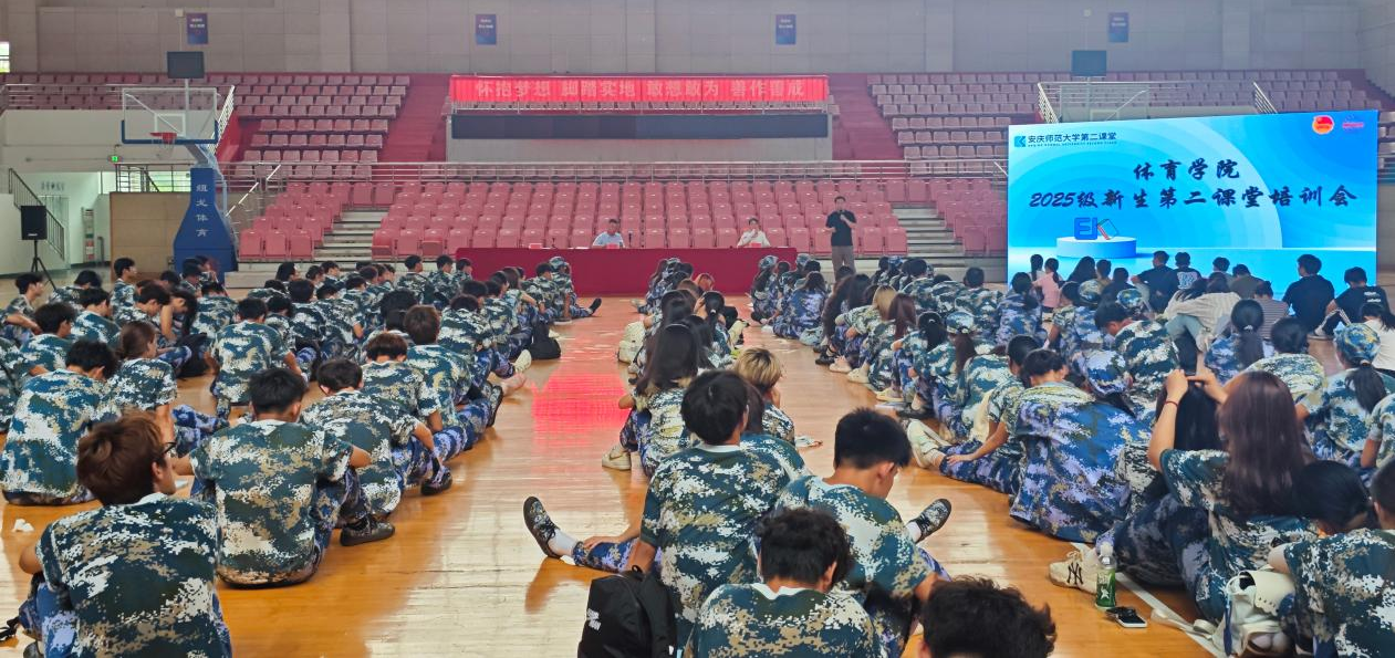 9月23日,体育学院在篮球馆开展2025级新生基础团务培训会。学院党委副书记杜百忍、团委负责人、新生辅导员出席,全体2025级本科生及研究生参加培训会。会议由体育学院团委负责人高伟飞主持。