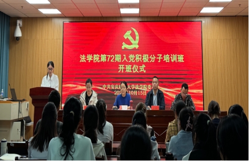 10月15日,法学院举办第72期入党积极分子培训班开班仪式。学院党委书记钱敏、学生党支部书记、第72期全体入党积极分子参加开班仪式。学院党委副书记、纪委书记卫功兵主持开班仪式。