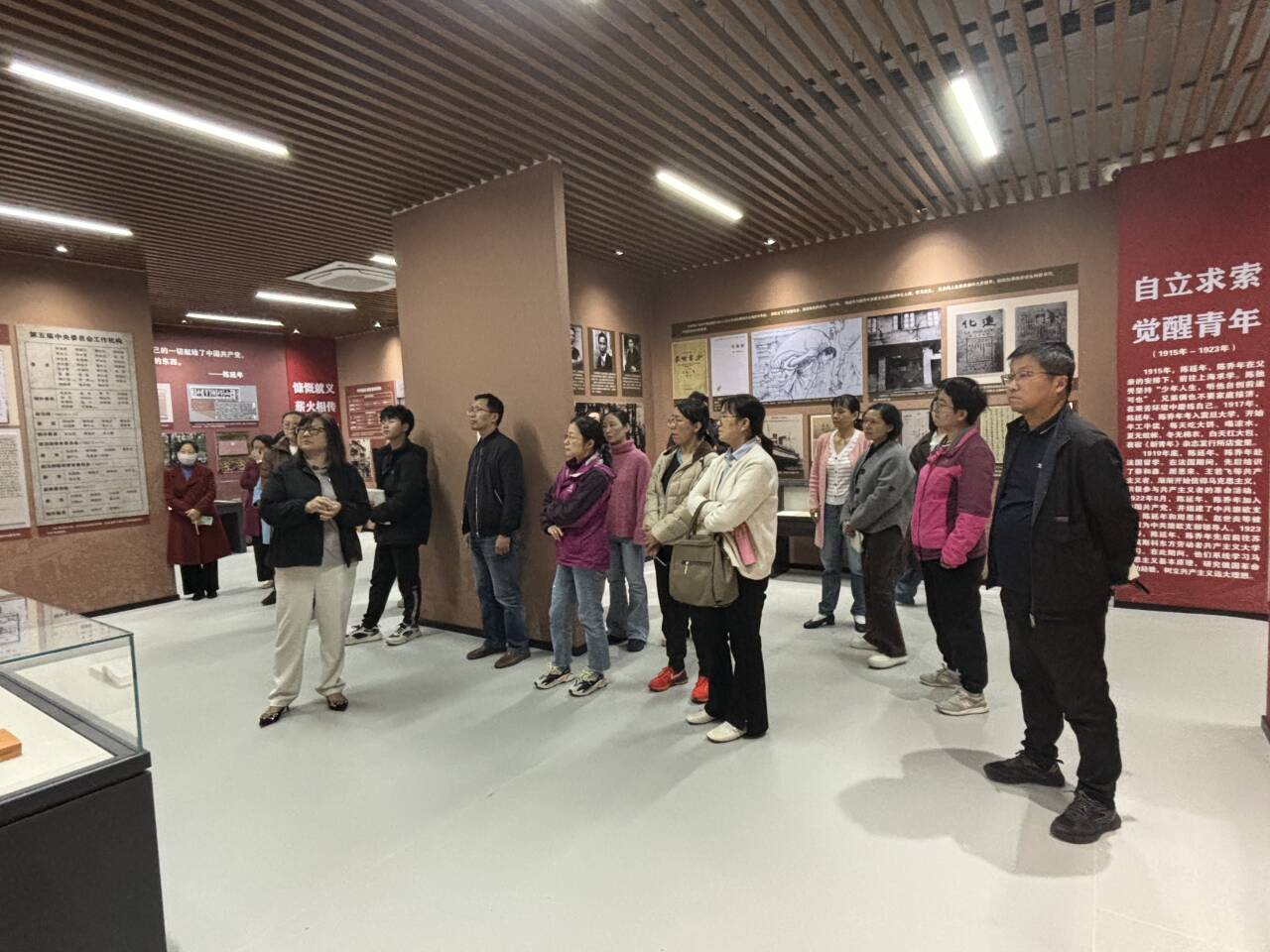 全体党员参观了位于图书馆一楼西北厅的陈延年、陈乔年烈士生平展,展区共有四个部分组成,分别是:故里启蒙、自立求索、披荆斩棘、慷慨就义。在参观过程中,讲解老师以生动的讲述和详实的史料,系统梳理了延乔兄弟从安庆启蒙、沪上求学,到远渡法国追寻真理,直至为革命英勇献身的壮烈历程。借助文献、复刻油画与实物展品,那段热血澎湃的岁月被真实还原,“自立求索、追求真理、不怕牺牲、勇于担当”的“延乔精神”深深烙印在每一位党员心中。