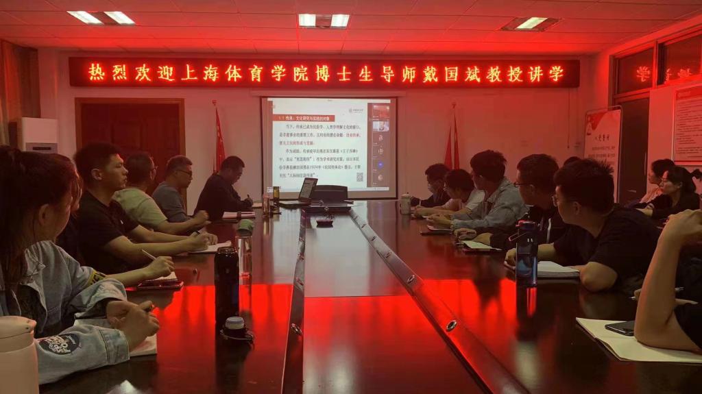 为庆祝beat365中国官方网站办学125周年,提高该学院办学层次与科研水平,营造良好的学术研究氛围,提升师生的科研创新能力,结合当前疫情防控形势,5月16日晚间,体育学院采用“线上+线下”混合方式,通过腾讯会议邀请上海体育学院博士生导师、原武术学院院长戴国斌教授为学院师生作了题为“试论体育文化传承:以武术为例”的学术报告。部分体育学院教师和全体体育专业硕士研究生聆听了报告,报告由体育学院院长章翔教授主持。
