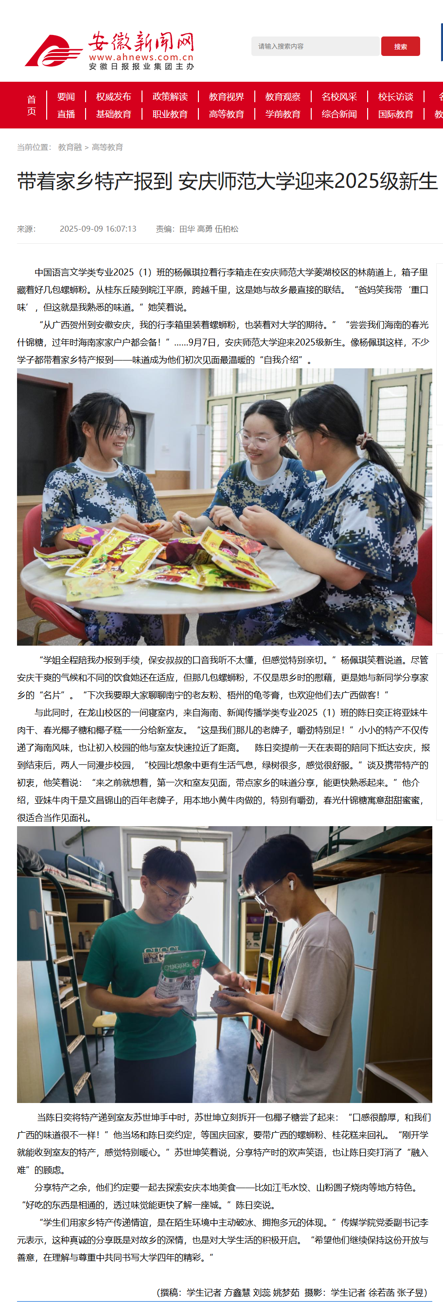 【安徽新闻网】带着家乡特产报到 beat365中国官方网站迎来2025级新生http://xxt.ahnews.com.cn/news/2025/09/09/c_40170.htm