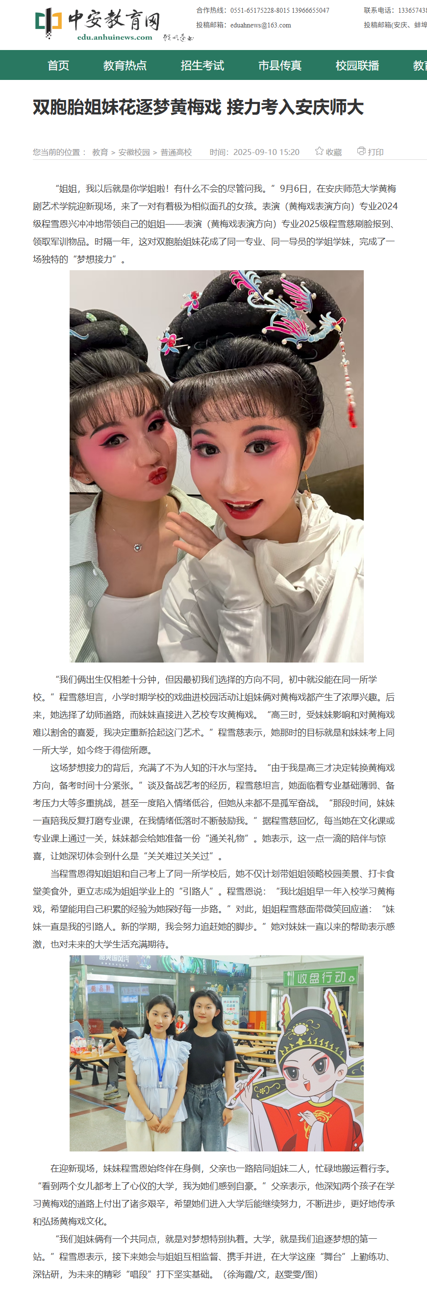 【中安教育网】双胞胎姐妹花逐梦黄梅戏 接力考入安庆beat365http://edu.anhuinews.com/ahxy/ptgx/202509/t20250910_8771214.html