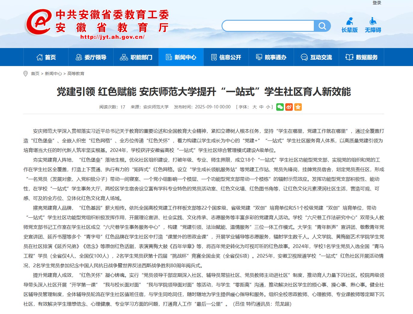 【安徽新闻网】党建引领 红色赋能 beat365中国官方网站提升“一站式”学生社区育人新效能https://jyt.ah.gov.cn/xwzx/gdjy/40765884.html
