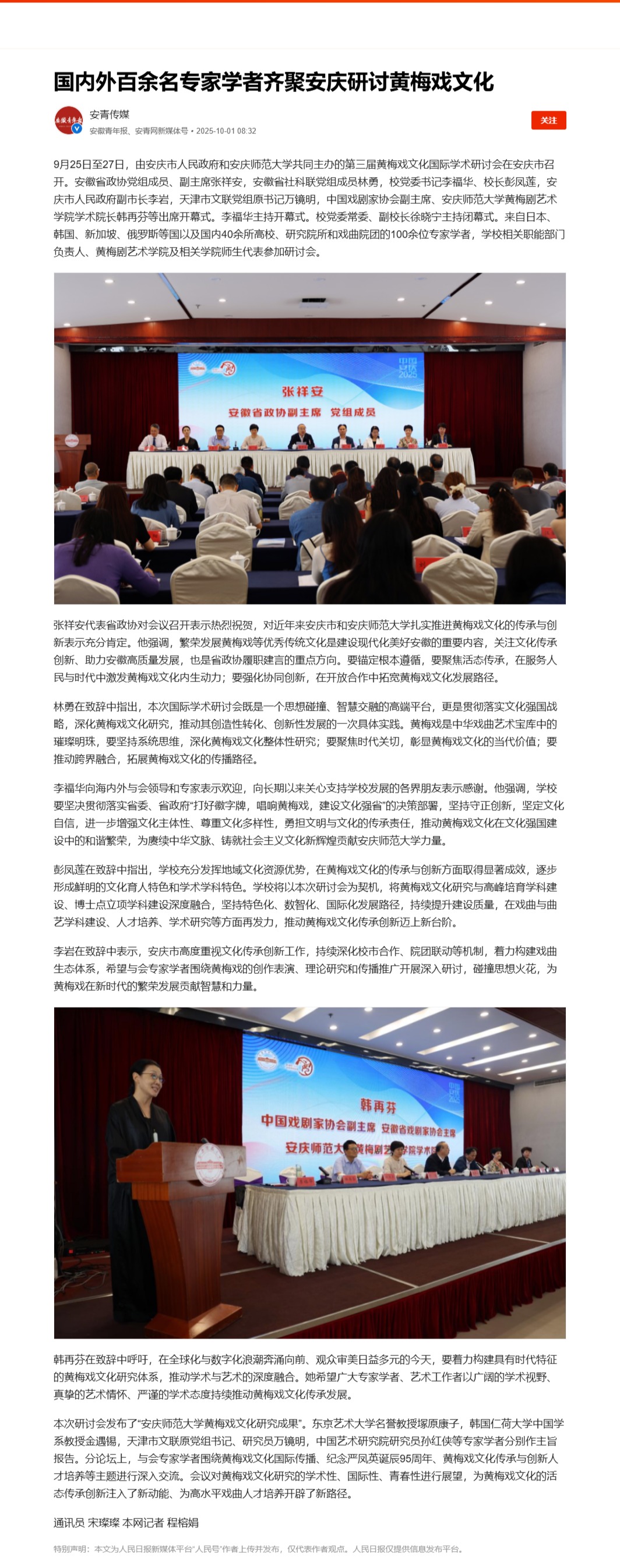 【安青传媒】国内外百余名专家学者齐聚安庆研讨黄梅戏文化https://www.peopleapp.com/rmharticle/30050392953