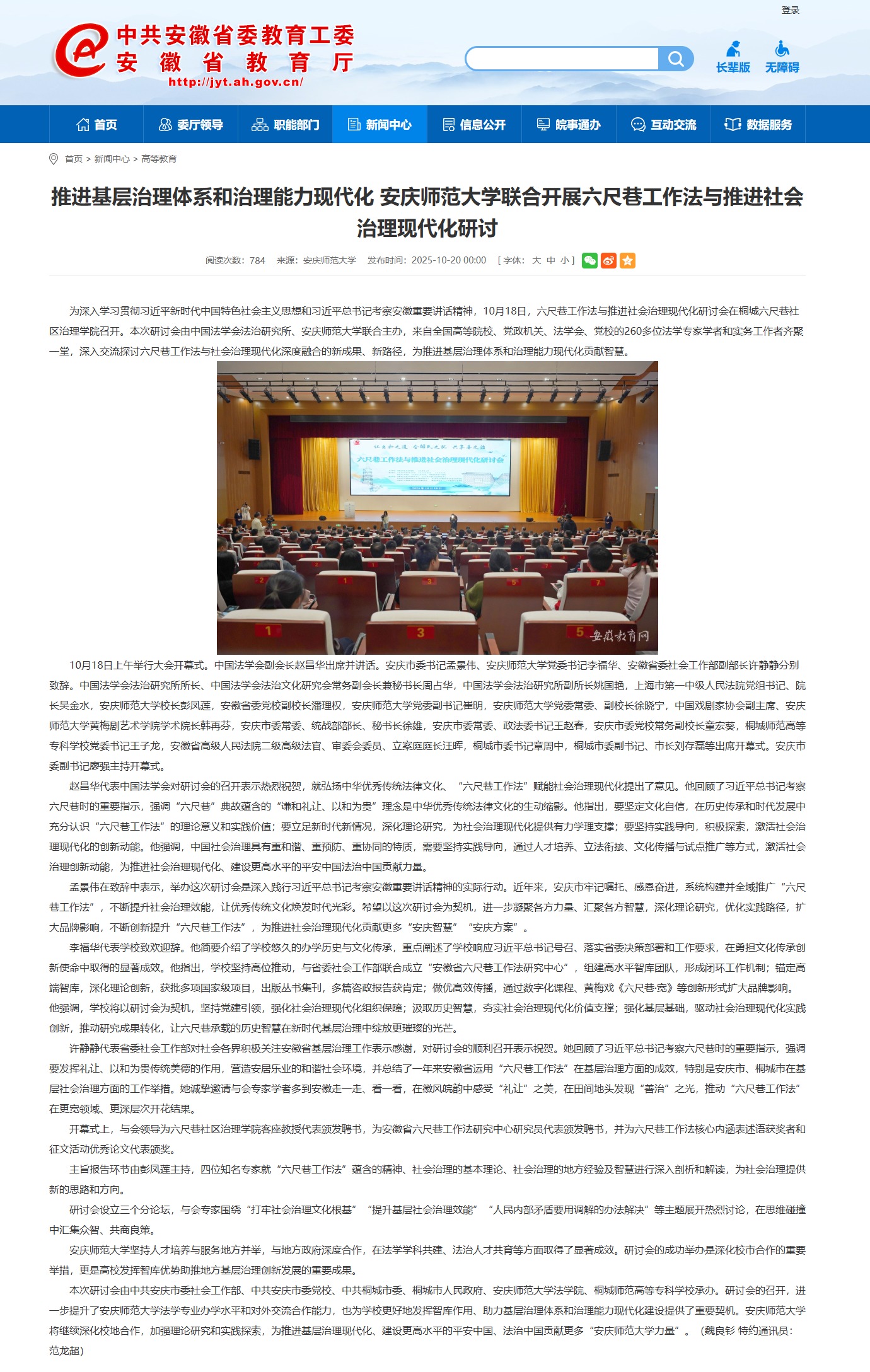 【安徽教育网】推进基层治理体系和治理能力现代化 beat365中国官方网站联合开展六尺巷工作法与推进社会治理现代化研讨https://jyt.ah.gov.cn/xwzx/gdjy/40769379.html